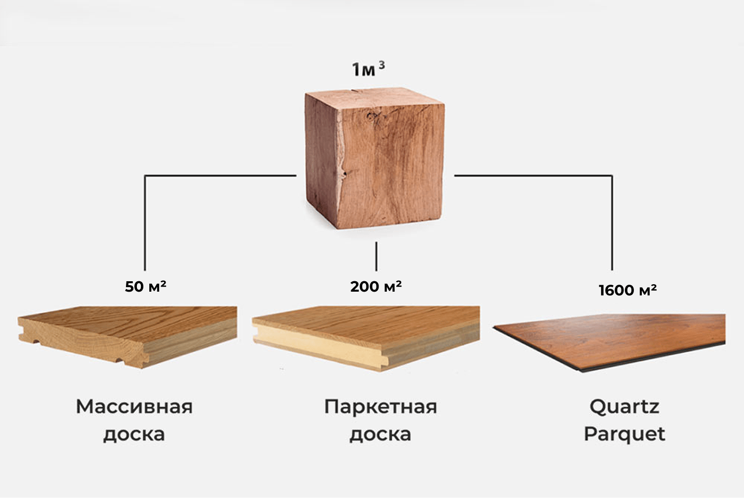 На 1600 м2 кварцевого паркета уходит всего 1 м3 древесины. Толщина ценной породы дерева в коллекциях Quartz Parquet составляет: